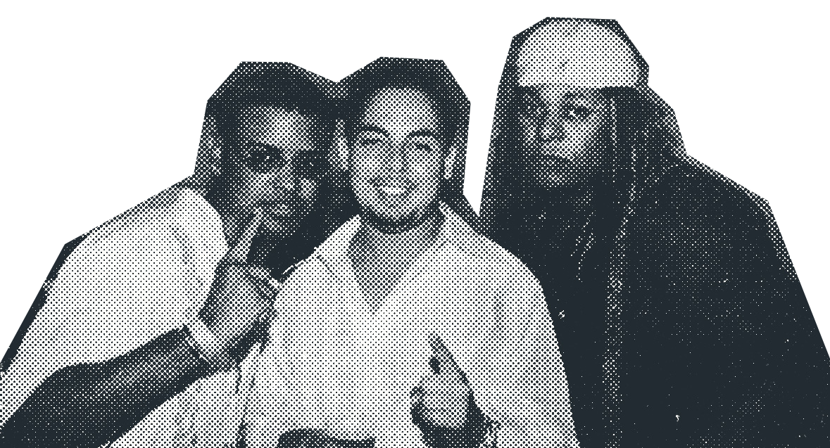 La representación heroica de los artistas (poses de frente y fondos urbanos estilizados)